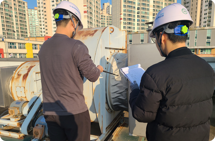 작업장의 작업환경 개선을 위해 환기시설 전반을 점검합니다.